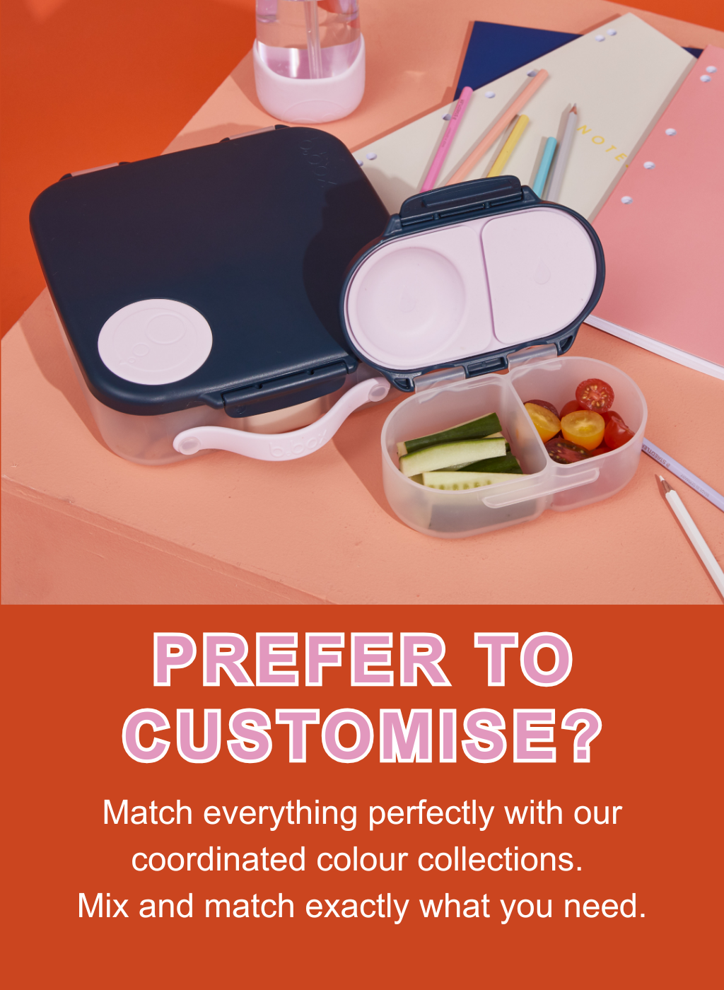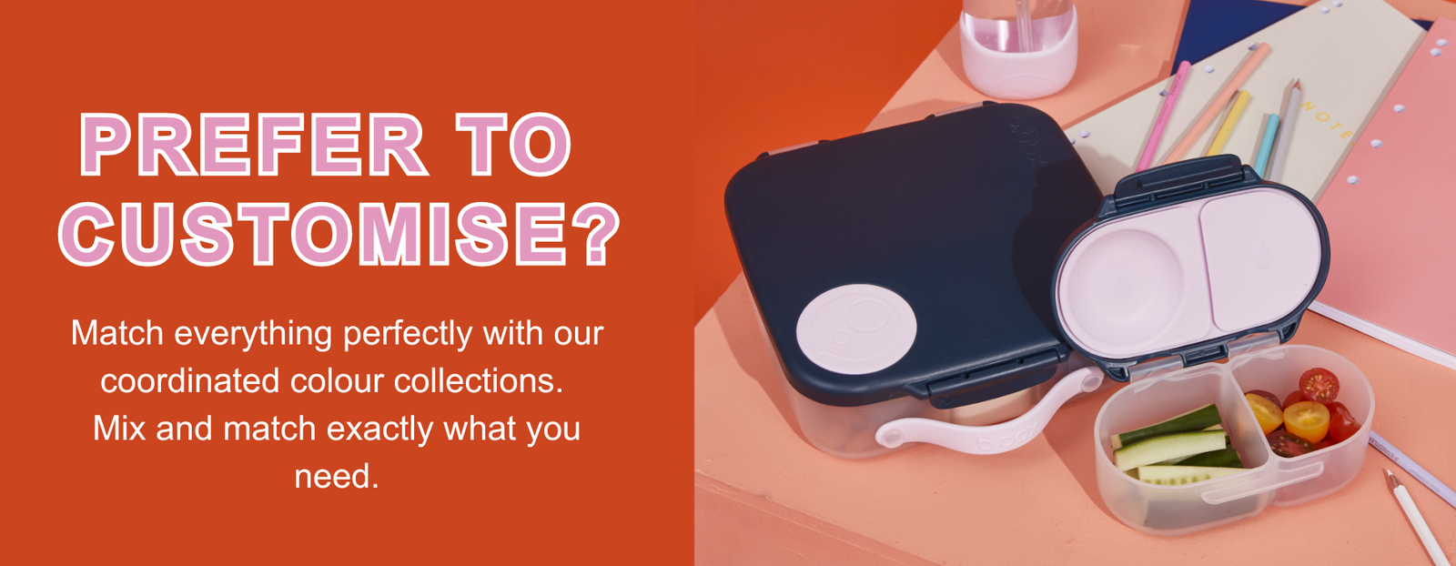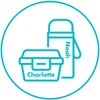 One click. One colour. One personalized name on everything. Your child's entire lunch system is sorted in 60 seconds. No hunting across multiple sites or brands.